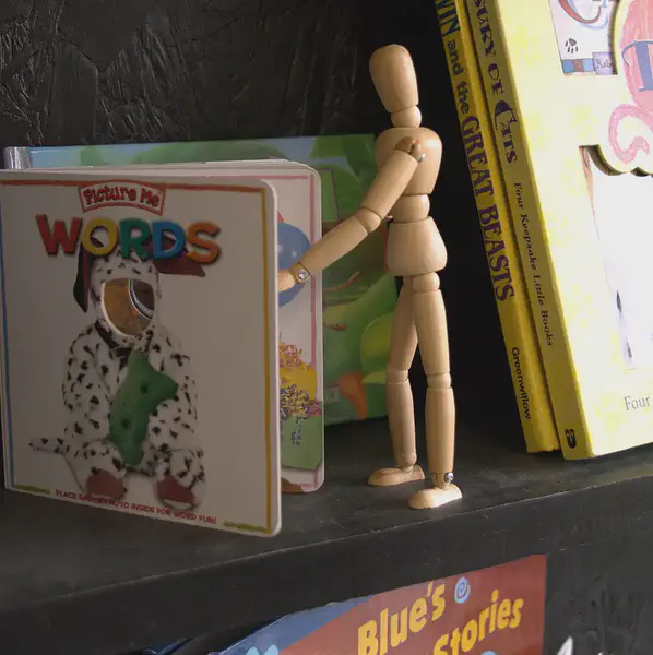 Model Man checks out a book