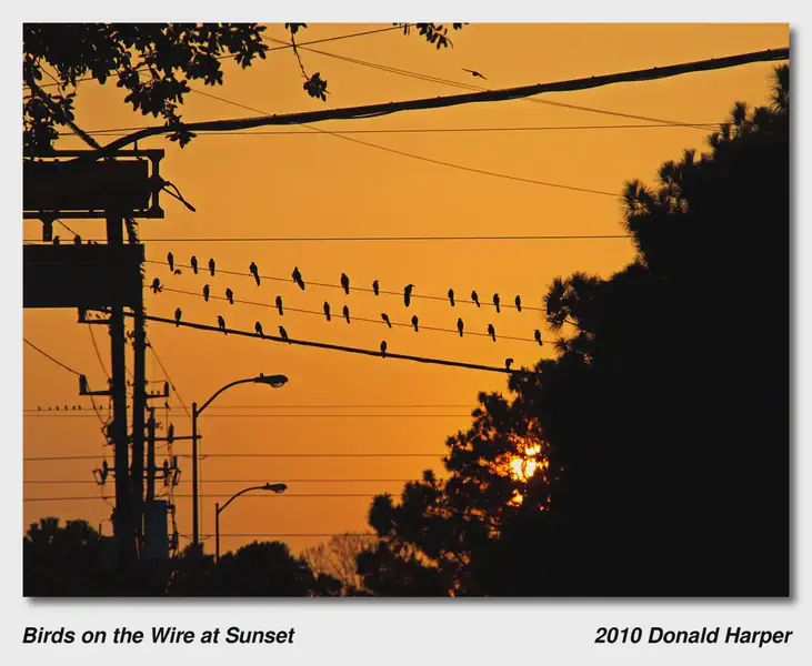 Brids on the Wire at Sunset
